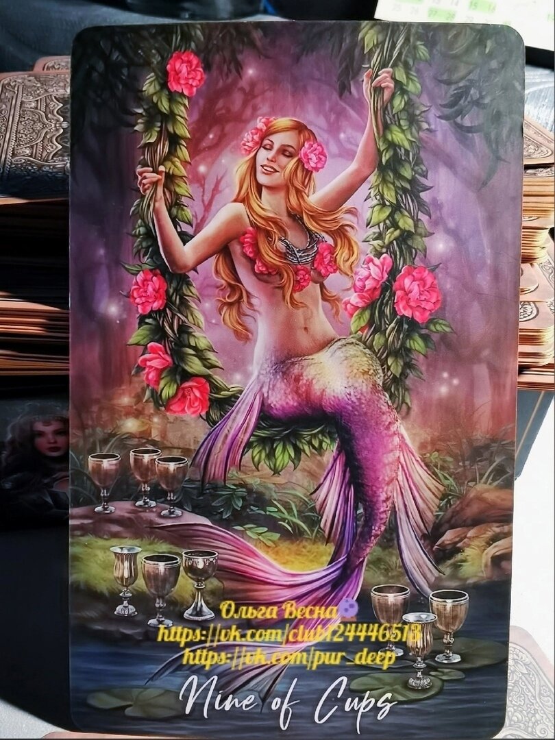 Иногда Девятку Чаш Таро называют "картой желания": она обещает исполнение желаний, гармонию и успех в делах.
