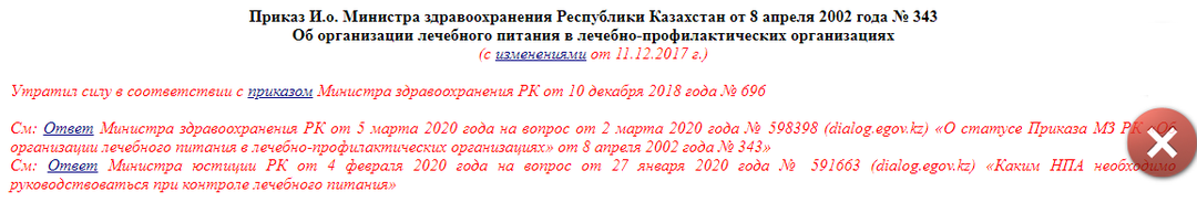Приказ МЗРК № 343 относится к правовым актам индивидуального применения и не содержит норм права, приказ № 343 был отменен.