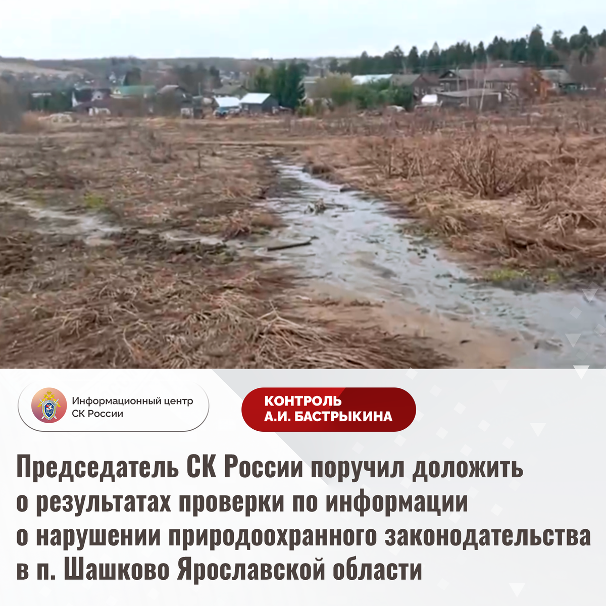 Председатель СК России поручил доложить о результатах проверки по информации о нарушении природоохранного законодательства в п. Шашково Ярославской области