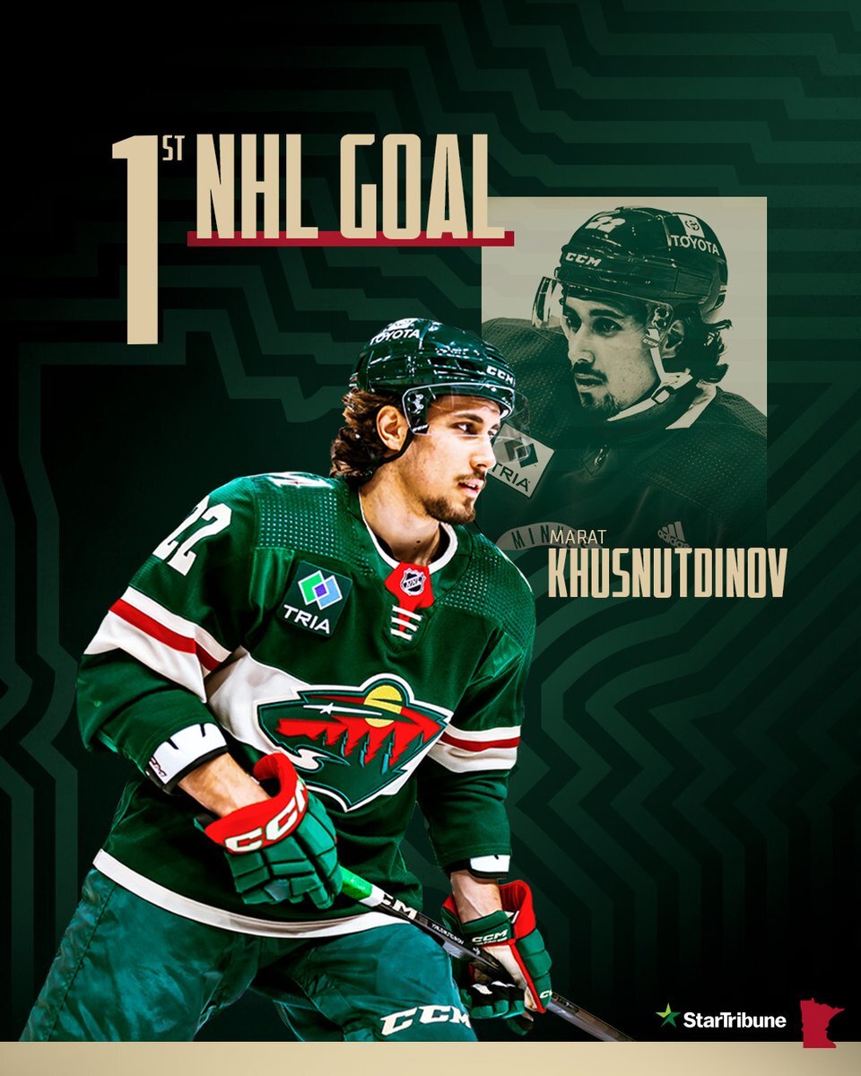 В своем 13-м матче в Национальной хоккейной лиге Марат Хуснутдинов впервые отметился заброшенной шайбой. На 8-й минуте второго периода пятничной встречи с «Вегасом» российский новичок «Миннесоты» ловко сыграл на подправлении после броска Брока Фабера, подарив поклонникам «Уайлд» робкую надежду на камбэк. Посмотреть видео Гол Хуснутдинова не растормошил «дикарей», потерпевших крупное поражение от «Голден Найтс» со счетом 2:7, однако поклонники «Миннесоты» отметили дебютную шайбу 21-летнего форварда, присоединившегося к команде лишь в начале марта. @bartley_sam:– Гол Марата – хоть что-то хорошее, случившееся сегодня. @RandomlyWild:– В этом матче трудно было найти какой-то позитив, но гол Хуснутдинова и его чертовски старательная игра на всех участках площадки – как раз из таких вещей. Я знал, что у него отличное катание, но понятия не имел, что он такой ретивый. @Nick9443:– Да и вообще в последних матчах он выдал несколько по-настоящему хороших отрезков. Впрочем, хотелось бы видеть в его
