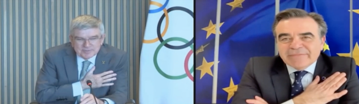 Имею в виду, президента Международного Олимпийского Комитета - Томаса Баха (на фото он - слева, далее ТБ).