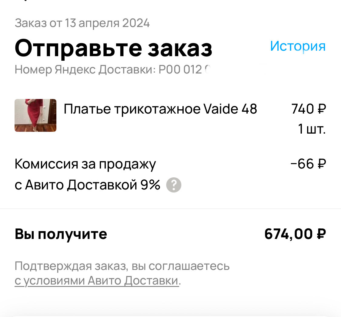 Всем здравствуйте! День начался неплохо, открыла Авито, обнаружила новый заказ на платье, которое недавно отфотографировала и выставила на продажу, и сначала очень очень обрадовалась! Так как платье давно не ношу, и носить точно никогда не буду- оно резко мне разонравилась ! Даже не поняла, зачем я его купила , и даже носила, ведь это совершенно не мой стиль…. Так бывает иногда , спонтанные покупки. Но вот открыв страницу заказа, радость моя поуменьшилась в разы😔 Комиссия стала 9 процентов, а это извините, уже одна десятая стоимости! Поэтому сейчас начну редактировать объявления, буду увеличивать стоимость , ну как как иначе то! Хотела же получить 700 рублей за платье, а получу 674 рубля, вроде мелочовка, и неприятно…. Кроме платья, продан ещё набор металлической посуды ( тарелка , кружка, ложка) при личной встрече . Плюс 420 рублей мне в кошелек! У меня сейчас время для Авито нет вообще, сильно занята здоровьем близких, объявлений новых не выставляю, некогда. Но те, что есть
