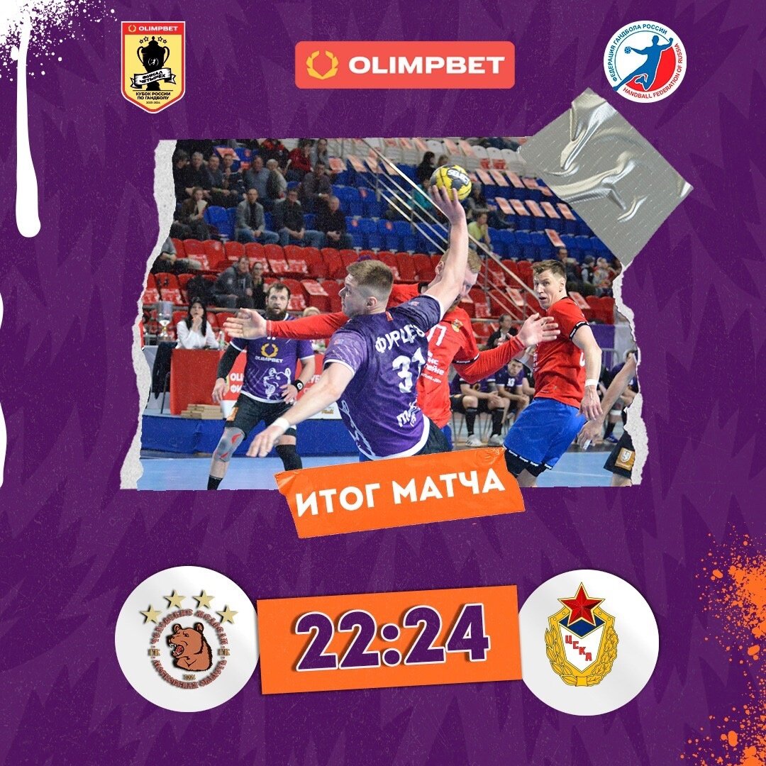 ЦСКА в противоборстве позиционного нападения оказался сильнее "Чеховских медведей" и завоевал путёвку в финал. После субботней победы не осталось внутренних турниров, в которых бы армейцы не выигрывали у чеховцев. БЦ рассказывает, как в Перми определялся первый финалист. Кубок России. "Финал четырёх". Алексей Никифоров: "Пермь соскучилась по праздникам. И по победам" Мужчины. Кубок России "Финал четырёх". Пермь Полуфинал 13.04. Чеховские медведи — ЦСКА — 22:24 (10:13) Судьи: Ершов, Павлюков. Чеховские медведи: Павленко (2/15=13%), Грушко (5/16=31%); Санталов (н/в), Емельяненко, К.Котов (4/9), А.Котов (2/4), Остащенко (4/4), Морозов (н/в), Корнев (2/3), Дзёмин (0/4), Фурцев (2/4), Дёмин (3/3), Кандыбин (н/в), Ермаков (2/2), Аксюков, Кулак (3/4). ЦСКА: Богданов (0/7=0%), Верещагин (6/20=30%), Никулин (1/2=50%); Гирик (5/9), Се Цинлун, Фокин (1/2), Чернецов (н/в), Белевцов (2/3), Воробьёв (3/4), Шишкарёв (8/10), Фёдоров (1/1), Ионов (2/3), Коркин (н/в), Царапкин (1/1), Садовский (1/2), Ру