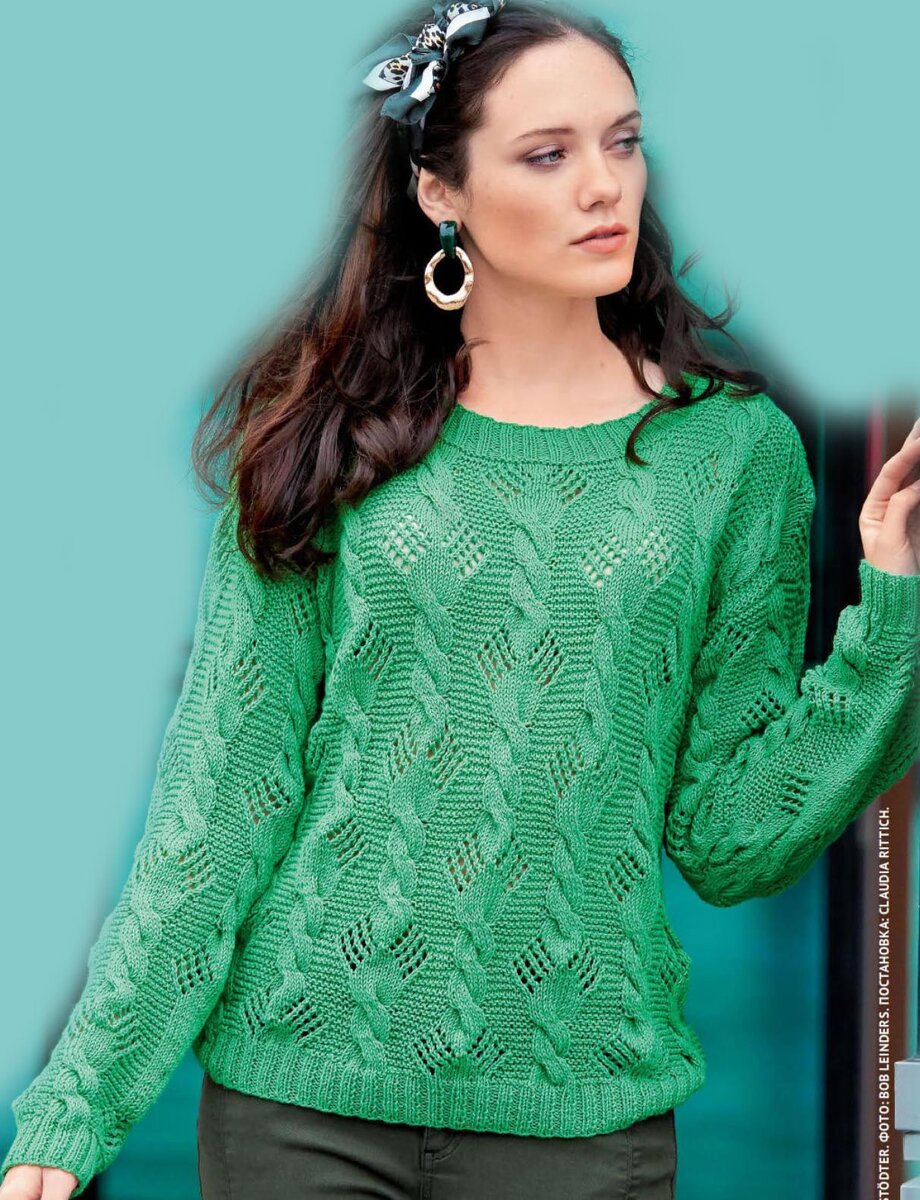Один лучше другого! Козыри этих хлопчатобумажных пуловеров - не только два сияющих цвета. Оригинальный рельефный узор с плавным переходом изящных прошв в узкие "косы" наверняка покорит сердца многих.