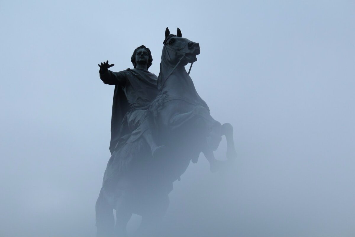 И над всем этим бурным морем возвышается Медный всадник - статуя для петербургского мифа знаковая. Его считали хранителем города. Он не раз в трудные моменты являлся жителям в “видениях” с предсказанием, что город будет стоять до тех пор, пока он остаётся на своём месте.