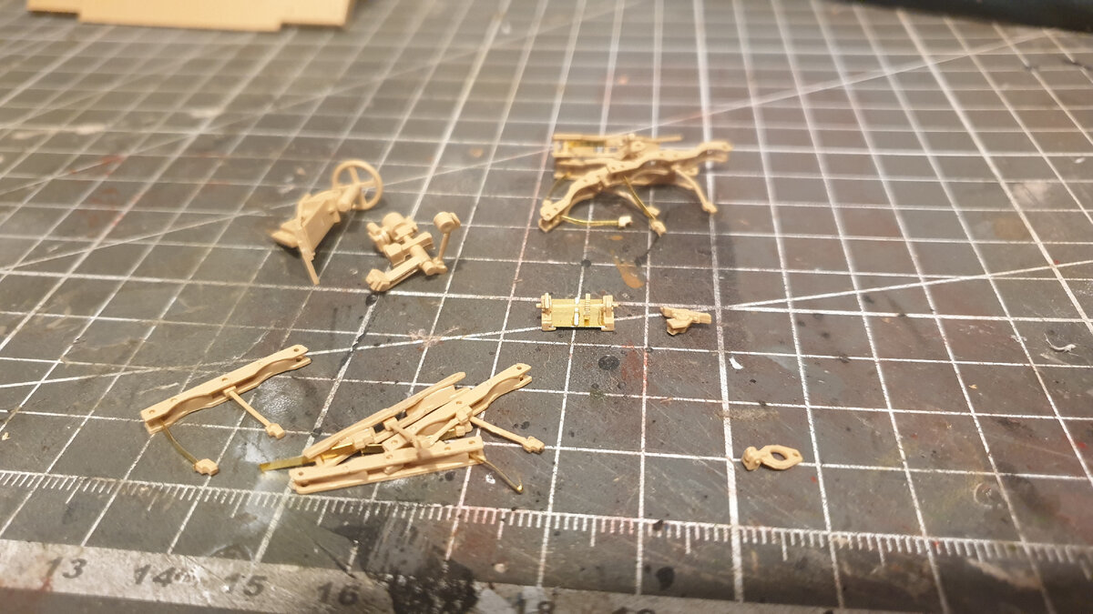 Сегодня мы будем собирать модель САУ "Sturmtiger". Сборку модели начинаем с узлов вертикальной и горизонтальной наводки, в сборке нет никаких сложностей, но деталей довольно много, для сборки боеукладки используем детали из фототравления, которые нужно согнуть и придать им округлую форму, затем подвешиваем получившиеся крепления для ракет к основной части боеукладки, на каждый элемент боеукладки идут: одно крепление из фототравления и одно из пластика. На данной боевой машине установлен реактивный бомбомёт Raketenwerfer 61, который изначально был создан для нужд кригсмарине, стрелял этот бомбомёт 38 - сантиметровыми ракетами. На внутреннюю сторону задней бронеплиты устанавливаем крепления и мелкие детали, также крепления устанавливаем на боковые бронеплиты, боекомплект также размещаем по бокам, данная модель будет с особенностью, поэтому справа боекомплекта не будет. Спереди устанавливаем раннее собранные узлы наводки. Перископ собираем из трёх частей и устанавливаем в рубке изнутри
