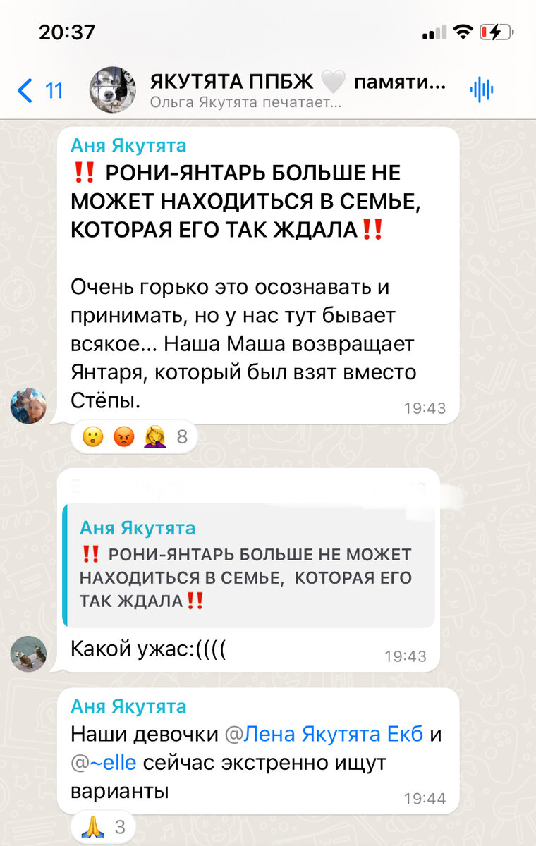 Вот тут кровь в голову ударила как минимум половине группы!!! Те, кто следит за нами, прекрасно знают, чего нам стоит вытащить из клетки Якутска щенка, вылечить его, переправить, выходить!!!! Это столько сил, нервов и времени! Потом стараемся найти хорошие, добрые, надежные ручки! И да, без возвратов не обойтись! Случаются, благо и даем по договору, и на связи!!! Чтобы в случае чего забрать щенка, и его не выкинули на улицу, испугавшись проблем или наигравшись, к сожалению, никто не застрахован! И мы не исключение - это все титанический труд!