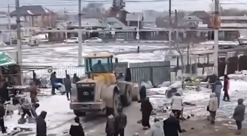 «Зачистил кишлак»: в Новосибирске тракторист снёс нелегальный рынок мигрантов