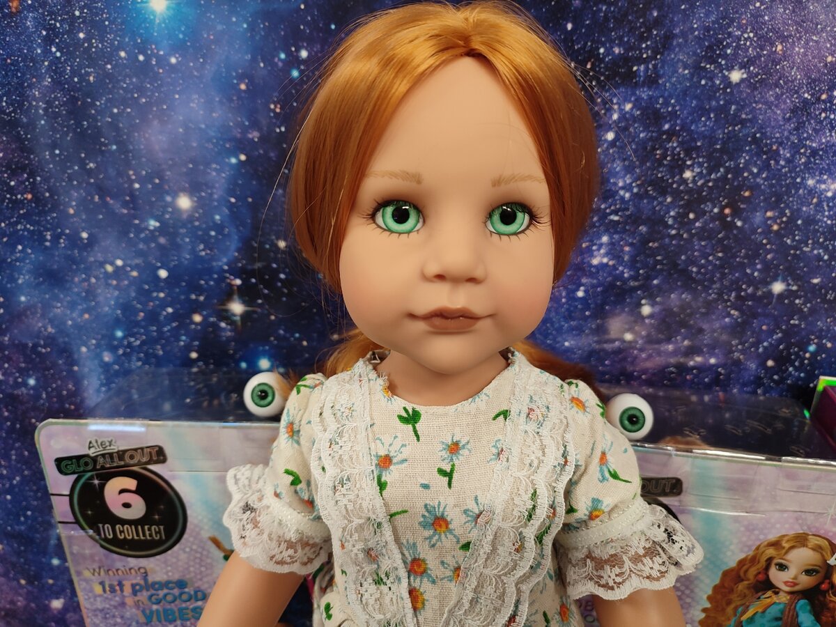 Вот и я приобщилась к этой мудрости — заменила глаза девочке, приехавшей по обмену. Глаза на мой вкус были слишком яркими и я решила заменить их на того же цвета, только темнее. Купила на озоне акриловые глаза сферы 20мм Так как не нашла в этом цвете и размере на али, цена конечно вышла так себе. На али за эту цену можно было 4 пары купить. Но что поделать, красота требует жертв. Первым делом надо снять голову. Без этого ничего не получится. Снимать голову Готц тяжелее, чем другим куклам. Винил очень плотный, чтобы греть водой нужна большая емкость. В итоге я просто поливала кипятком из кастрюли, намочила волосы. Дальше мы просто вдавливаем старые глаза внутрь. Если винил все еще разогрет, это получится легко. Ресницы не трогаем, они закреплены на крае века. У меня были глаза-сферы с ножками, потому поставить их было легко, я просто взяла их за ножу пинцетом и воткнула.