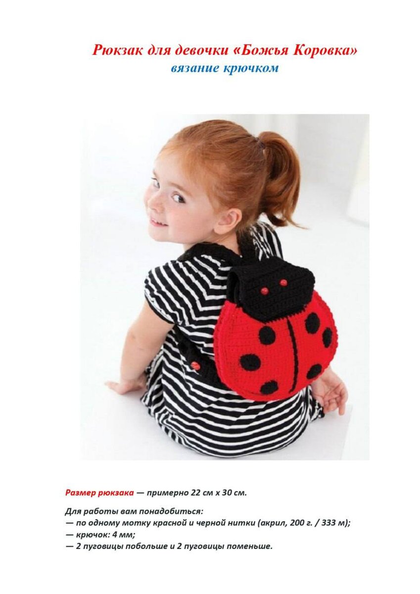 Детский рюкзак "Божья коровка". Фото+описание как вязать.
