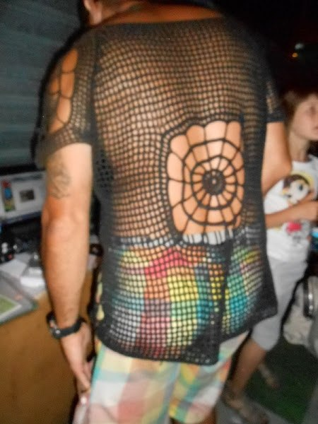 Несколько лет нашла в интернете фотки оригинального черного летнего джемпера. Опубликовала на форуме рукоделия Осинке. Через некоторое время связали похожий синий джемпер. Gala_I написала: "Связала сыну футболку