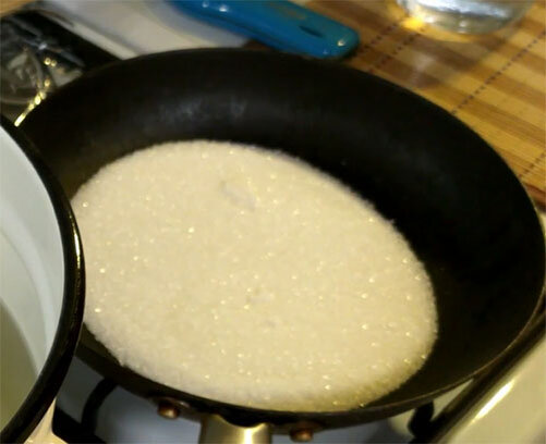 © KM-Doma.ru В 6 – ти литровую кастрюлю высыпаем 1 стакан сахара, заливаем 1,5 литрами кипящей воды и размешиваем до растворения сахара. Затем добавляем 2 литра холодной воды, можно некипяченой. В сухую сковороду высыпаем 0,5 стакана сахара, включаем газ на полную мощность и пережигаем его, периодически перемешиваем. Как только образуется стойкая, крупная пена и запах жженого сахара, необходимо содержимое сковородки перелить в кастрюлю с водой и содержимое перемешать до растворения сахара. Затем в сковородку заливаем 0,5 литра холодной воды – это нужно сделать для того, чтобы собрать остатки сахара. Выливаем воду в кастрюлю, опускаем чистый палец в жидкость, если жидкост