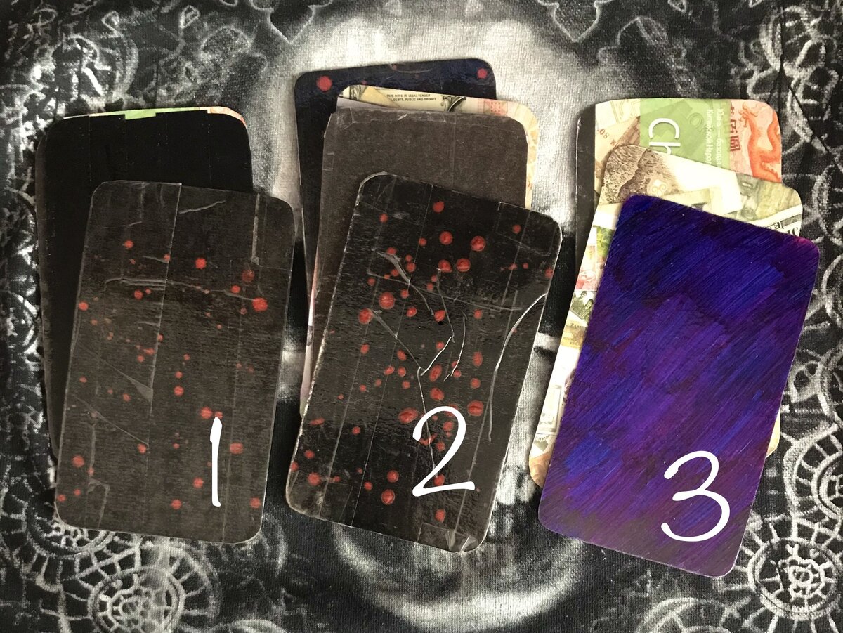 Загадываем человека и интуитивно выбираем один вариант из трёх предложенных: Смотрим, что на обороте и читаем толкование карт: 1. Мысли загаданного человека где-то далеко. Он не забывает Вас, Вы уже давно стали частью его самого, но в данный момент случилось нечто, частично вытеснившее Вас из его головы. Это может быть проблема в семье, на работе, но можете не сомневаться, другая женщина в этом не замешана. Какими бы сложными ни были обстоятельства в его жизни, Вам он верен, Вами он всегда дорожит. Он мечтает о том, как разберётся со всеми делами и сможет сказать Вам, как скучал. Сейчас он чувствует вину за то, что ваши отношения изменились. В ближайшую пару недель ситуация с загаданным человеком резко изменится. Вы выйдете из режима ожидания и сможете обсудить с ним все проблемы. Всё встанет на свои места, а недавние переживания покажутся страшным сном. 2. У загаданного человека в мыслях и чувствах много места отведено Вам, он часто представляет Вас в роли своей девушки/супруги. Некот