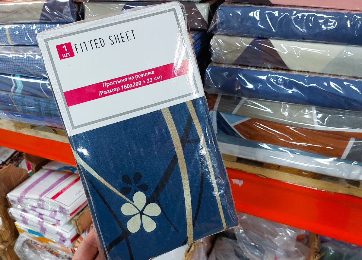 Привезли впервые в этот Светофор Простынь на резинке. Размеры пока есть еще 3 разных: 140*200см, 160*200см и 180*200см. Современная неплохая ткань Ранфорс, в ее составе хлопок 70%, полиэстер 30%. Цена 456,3 рублей.