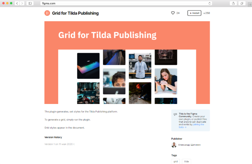 Шесть плагинов, на которые стоит обратить внимание дизайнеру: 1) Grid for Tilda Publishing Плагин генерирует сетку для платформы Tilda Publishing. Раньше дизайнерам нужно было запоминать значения сетки или копировать её, а теперь достаточно нажать одну кнопку. 2) Unsplash Вставляйте изображения за два клика. Выбирайте область, в которую нужно вставить картинку или импортируйте ее на холст с оригинальным размером.