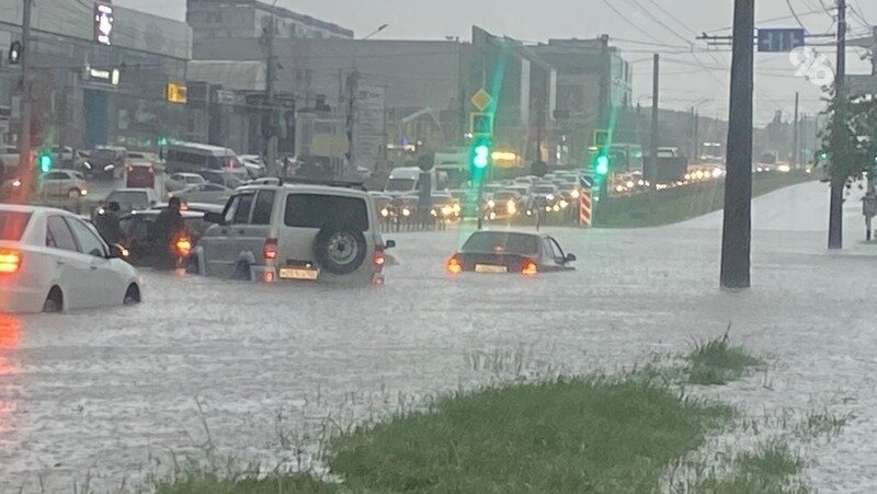 14.04.2024г. ЧС/ Сильный дождь с градом прошел в кабардино-балкарском Нальчике. На роликах от очевидцев видно, как улицы затапливает, а автомобили плавают по дорогам. Футбольный матч «Спартак-Нальчик» — «Севастополь» пришлось на 42-й минуте прервать на час: поле просто затапливало.
