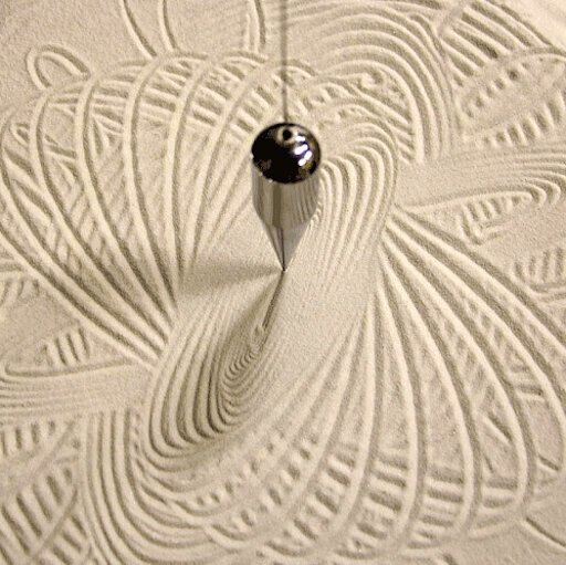 Если на длинной верёвке (нитке, леске, струне и пр.) подвесить груз, а затем раскачать его, он будет совершать колебательные движения "туда-сюда". Ничего особенного - по крайней мере, так думали до середины XIX века, пока французский механик Жан Фуко не обратил внимание на довольно интересную и странную деталь: оказывается, плоскость, в которой движется маятник, слегка поворачивается, причём это происходит всегда и в одном и том же направлении. Для большей наглядности Фуко насыпал внизу песок, удлинил верёвку и утяжелил сам маятник, чтобы дольше качался. И тот начал вырисовывать на поверхности песка симпатичные "ромашки". Что же доказал Фуко своим маятником? Оказывается, он подтвердил старую добрую истину, высказанную Галилеем: "И всё-таки она вертится!" В смысле - Земля. Учёный понял: поведение подвешенного груза объясняется тем, что в процессе его перемещения в плоскости колебания земной шар совершает едва заметный поворот, при этом сама плоскость остаётся неподвижной относительно