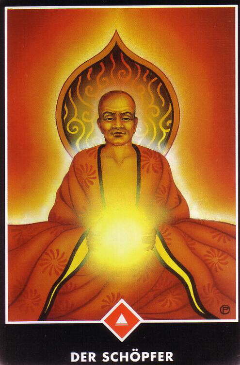 Творец (Король Огня) Существуют два вида творцов в мире: первый работает с предметами - поэт, художник, они работают с предметами, создают предметы. Другой тип творца, мистик, создает себя. Он не работает с объектами, он работает с субъектом, он работает над собой, своим существом. И он настоящий творец, настоящий поэт, потому что он превращает себя в шедевр. Вы несете шедевр, спрятанный внутри вас, но вы стоите у него на пути. Только отодвиньтесь в сторону, и шедевр будет открыт. Каждый - это шедевр, потому что Бог никогда не дает рождение чему-то меньшему. Каждый несет в себе скрытый шедевр многие жизни, не зная, кто он, и пытаясь на поверхности стать кем-то другим. Отбросьте идею стать кем-то другим, потому что вы уже шедевр, вас нельзя улучшить. Вам придется только прийти к этому, узнать это, осознать это. Сам Бог сотворил вас, вы не можете быть улучшены. Мастер Дзен на этой карте использует энергию огня. Он способен ее использовать для созидания, а не для разрушения. Он приглашает