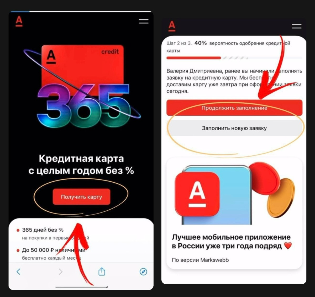 Заказывай карту только по ссылке твоего пригласителя! Перед заказом кредитной карты очень важно увеличить вероятность одобрения от банка. Для этого есть несколько действий, которые сильно повышают вероятность одобрения. Сделайте все эти действия! 1) Потрать от 1000р с дебетовой карты. Обязательно надо расплачиваться картой на кассе или в интернет магазине вводя номер карты (НЕ через СБП, и НЕ через QR-код) 2) Подключи свой профиль Гос Услуг 3) Подключи Альфа банк как основной способ оплаты СБП 4) Если уже есть открытая кредитные карты (даже в других банках), уменьши по ним лимиты на минимум 5) Если первый раз вам отказали: Обязательно пишите кредитный лимит 5000р (самый минимальный). Далее в личном кабинете попользовавшись пару недель картой, вы сможете поднять этот кредитный лимит! Нет задачи получить максимальную сумму одобрения, есть задача получить карту! 1) Переходим по ссылке от твоего пригласителя УКАЗЫВАЙ МИНИМАЛЬНЫЙ КРЕДИТНЫЙ ЛИМИТ 5000р! Все, ожидайте курьера (сотрудника выез
