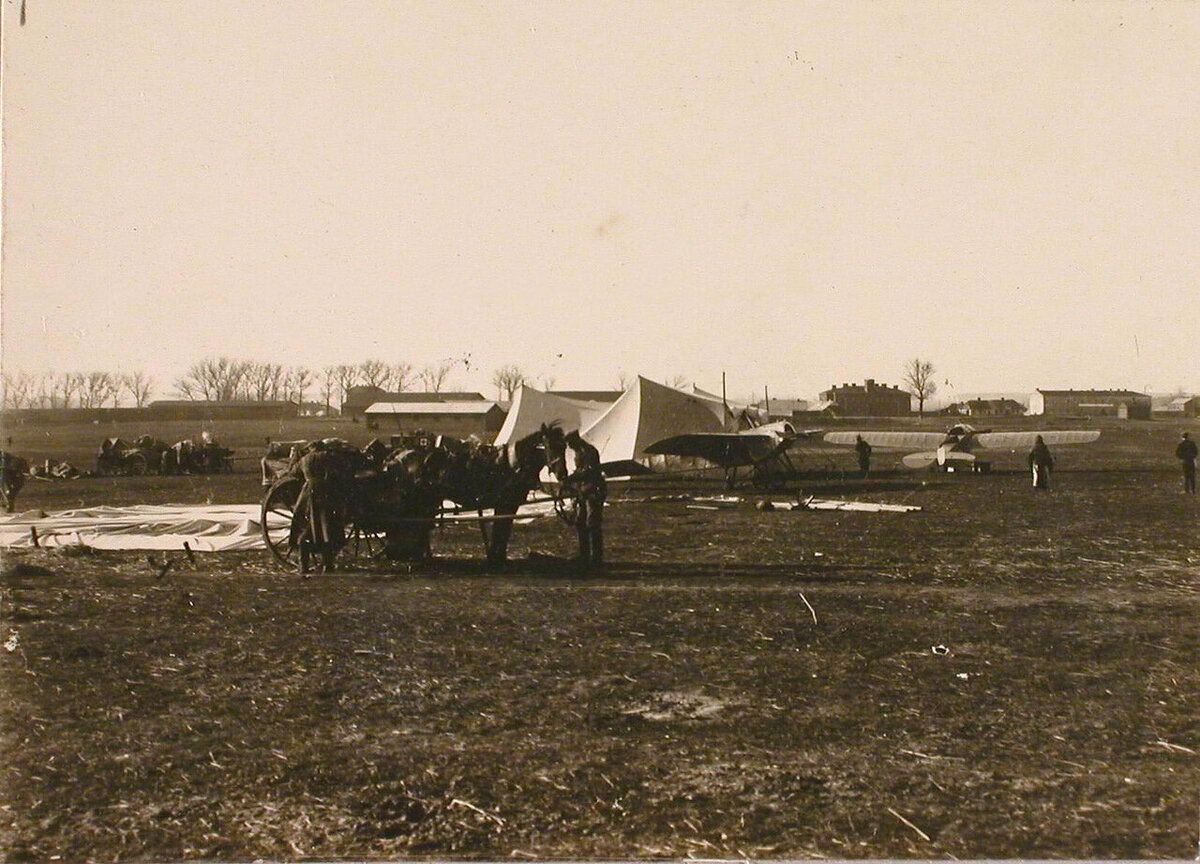 Так исторически сложилось, что нашу Россию принято считать в прошлом «лапотной», «пьяной» и аграрной страной. Однако я хочу опровергнуть эти утверждения. А то, понимаете ли, большая половина мира считает, что у нас кроме как картофеля и водки ничего то и не было. Документально подтвержу, что Имперская Россия на период войны 1914- 1915 годов уже имела высокие, по тем временам, технологии. Однако потому и затевались войны Запада с Россией, чтобы не дать нашей Стране окрепнуть в этих технологиях. Им нужна была только аграрная и сырьевая России, а не как не Могучая Империя! Хочу, чтобы каждый из вас гордился нашей Страной, народом и образом жизни. А теперь документальные чёрно- белые фото летательных аппаратов задействованных XX корпусным авиационным отрядом на войне 1914-1915 годов. Фотографии редкие, так, что внимательно их разглядывайте и запоминайте: Россия никогда не была отсталой Страной! Вид части аэродрома, на переднем плане повозка с оборудованием для лазарета, август 1914 год Лю