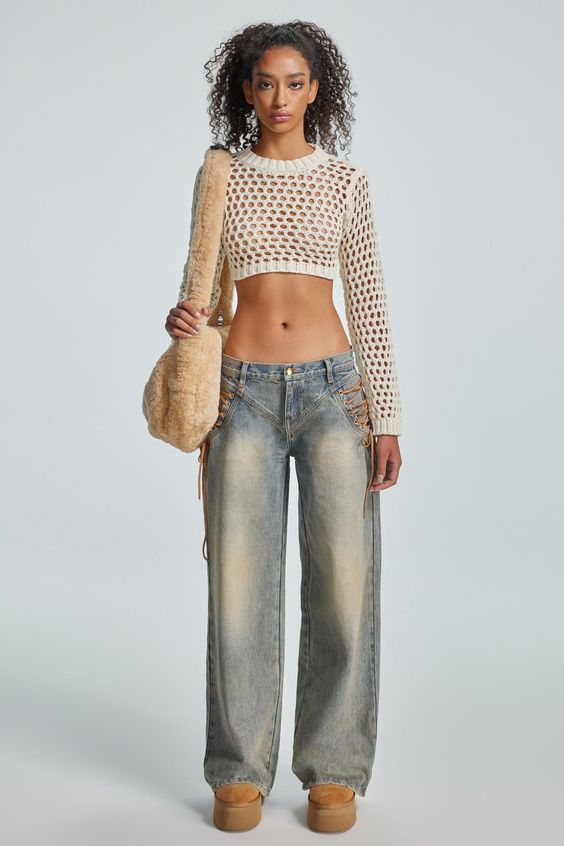 Джинсы — неотъемлемая и самая универсальная часть любого гардероба: мы носим их круглый год и вписываем в любые образы от деловых до вечерних. Поэтому хочется, чтобы этот предмет одежды был не только комфортным, но еще и стильным. Разбираем, какие джинсы будут в тренде в 2024 году. «Грязные» джинсы Если вы не являетесь поклонником светлых джинсов, возможно, вам понравится еще одна модная тенденция, которая заслужила внимание в модной индустрии в последнее время — это необычная, но очень интересная тенденция — "бомж-стайл". «Грязные» джинсы стали одной из ключевых составляющих этого тренда Важно — «грязные» джинсы должны быть широкие или прямые, желательно на низкой посадке. Носить «грязные» джинсы лучше с вещами в стиле гранж. Например, подойдут рваные джемперы, оверсайз футболки, бомберы, кожаные куртки, грубые ботинки или кеды. Джинсы с декором Декорированный деним вновь на переднем плане модных тенденций, возрождая стиль нулевых и десятых. Украшенные джинсы с изысканной вышивкой, св