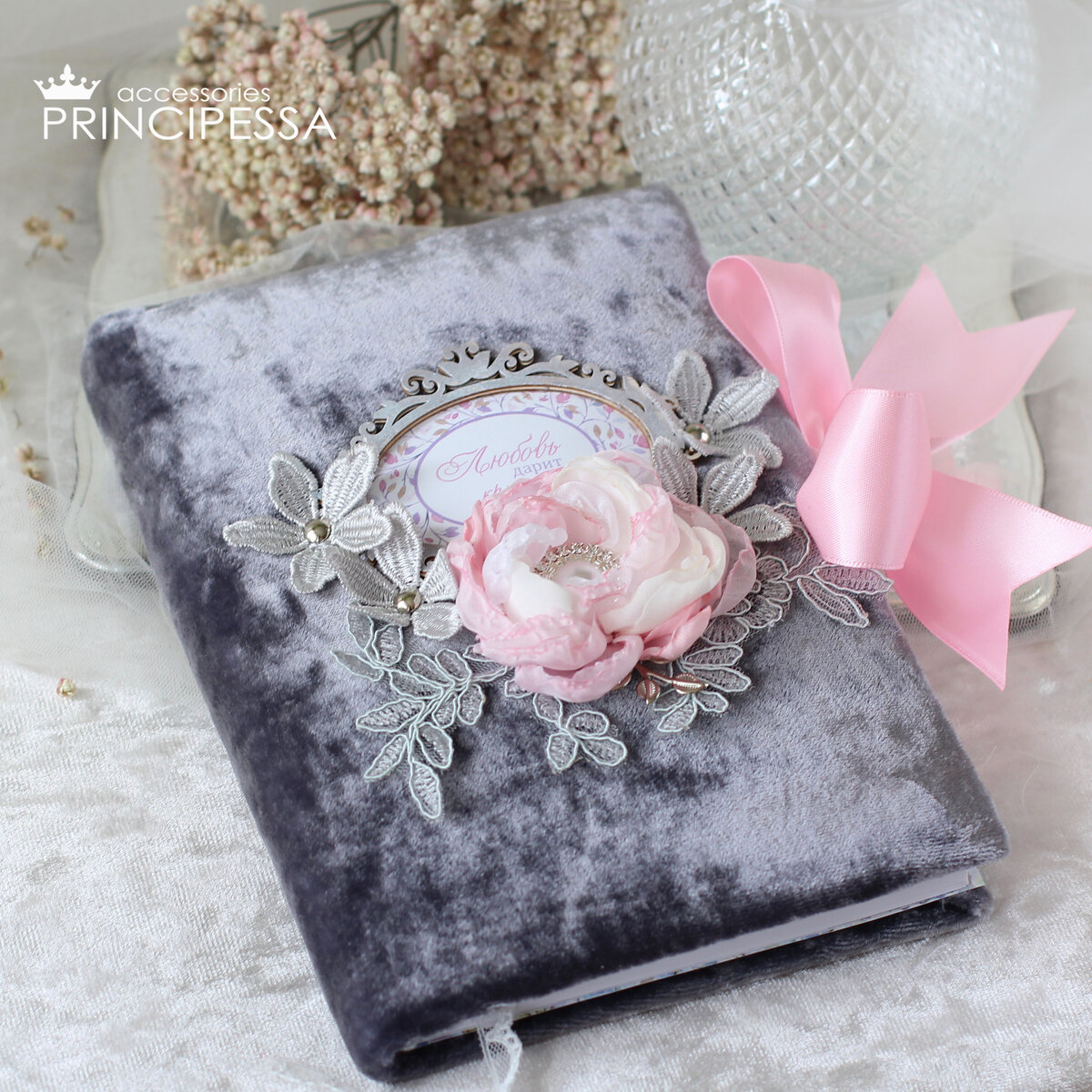 Блокнот ручной работы, блокнот декорирован бархатом и цветами, блокнот в мягкой обложке
