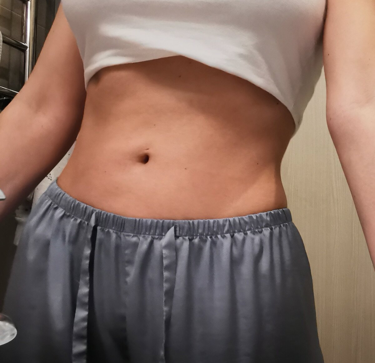 Я снова любуюсь животом, вернее его отсутствием и появлением талии. Скоро, думаю, привыкну и перестану так много внимания уделять)