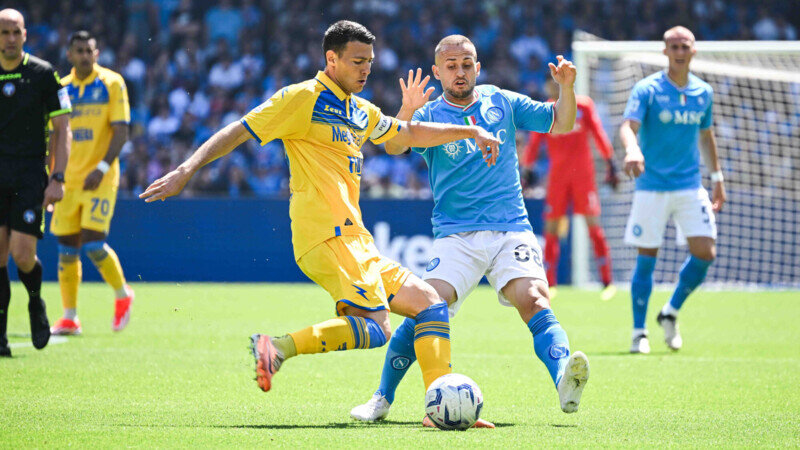 «Наполи» на своем поле сыграл вничью с «Фрозиноне» в матче 32‑го тура чемпионата Италии по футболу. Встреча завершилась со счетом 2:2. В составе хозяев забитыми мячами отметились Маттео Политано и Виктор Осимхен. У гостей дубль оформил Валид Чеддира. Нападающий «Фрозиноне» Матиас Суле не реализовал пенальти на 30‑й минуте. На 7‑й добавленной ко второму тайму минуте красную карточку получил защитник «Наполи» Марио Руй. «Наполи» занимает восьмое место в турнирной таблице Серии А, набрав 49 очков. «Фрозиноне» благодаря ничьей выбрался из зоны вылета, команда идет 17‑й с 26 очками. В следующем туре «Наполи» 20 апреля на выезде сыграет против «Эмполи». «Фрозиноне» днем позднее в гостях встретится с «Торино». Прямые трансляции матчей чемпионата Италии смотрите на каналах группы «Матч», а также сайтах matchtv.ru и sportbox.ru. Чемпионат Италии. 32-й тур «Наполи» (Неаполь) — «Фрозиноне» (Фрозиноне) — 2:2 (1:0) Голы: Политано, 17 (ВИДЕО). Осимхен, 64 (ВИДЕО). — Хеддира, 50 (ВИДЕО), 73 (ВИДЕО