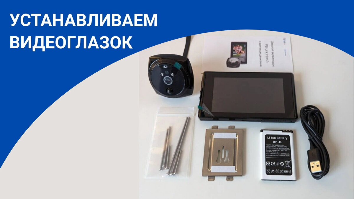 Монтаж достаточно легок и прост. Производители, стараются облегчить задачи клиентам, собирая в комплект все необходимое. Поэтому установка глазка видеонаблюдения не занимает много времени и сил. Предлагаем рассмотреть, как установить видеоглазок Ps-Link PDV9 своими руками.