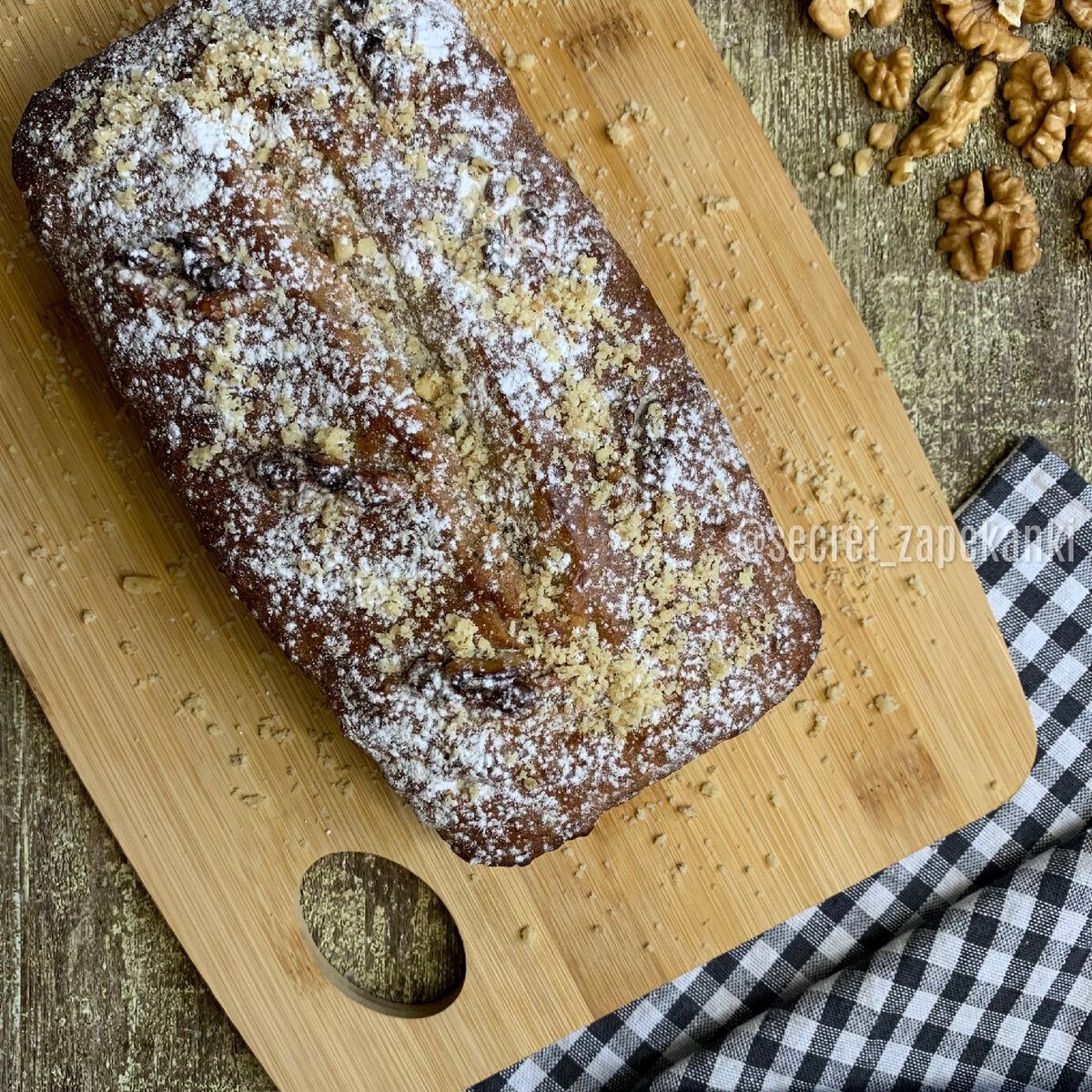 Если без сладостей в пост обойтись сложно, а халва, пастила, варенье и прочие козинаки перепробованы, то обязательно нужно иметь в запасе проверенный рецепт постной выпечки. Предлагаю приготовить банановый кекс с орехами. Он отлично впишется в ваше постное меню и придётся по вкусу всем. Давайте начнём: - сахар 100 г (можно меньше) - соль 1 щепотка - масло растительное 100 мл (ещё немного для формы и корочки) - банан 2 шт. (очень спелые) - пюре яблочное 100 г (детское без сахара) - мука 200 г - корица 1 ч. л. - гвоздика молотая 1/4 ч. л. - разрыхлитель 5 г - орех грецкий 65 г - пудра сахарная (по желанию) Форма 25*14*7 см. Смешиваем сахар, соль и растительное масло. Отставляем, периодически помешиваем. Бананы берём самые спелые-преспелые, желательно почерневшие, заждавшиеся своего часа. С помощью вилки превращаем их в пюре и добавляем к ним пюре яблочное. Перемешиваем, добавляем смесь сахара с маслом и снова хорошо перемешиваем. В получившуюся бананово-яблочно-масл