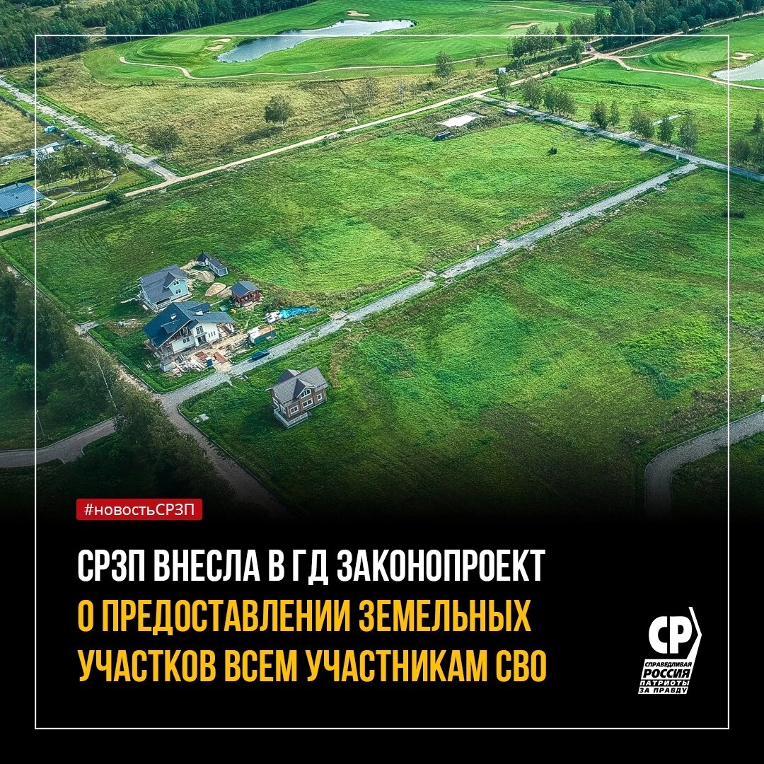 СПРАВЕДЛИВАЯ РОССИЯ - ЗА ПРАВДУ внесла в Госдуму законопроект о предоставлении участникам СВО в безвозмездное пользование земельные участки площадью до одного гектара, находящиеся в государственной или муниципальной собственности. По понятным причинам земли должны предоставляться во всех регионах, за исключением Крыма, Севастополя, Москвы, Санкт-Петербурга, Московской и Калининградской области, а также регионов, входящих в состав ЮФО и СКФО. ☝ Участки должны быть пригодны для индивидуального жилищного строительства. Вместе с землёй людям нужны готовые коммуникации. От региональных и муниципальных властей потребуется создать все необходимые условия, заранее подвести газ и электричество прямо до границ участков, чтобы ветеранам СВО не пришлось тратить большие деньги на самостоятельный подвод трубы. В силу высочайшей стратегической значимости выполнения задач СВО принимать законопроект нужно в самые короткие сроки.