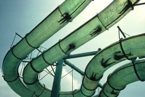 Была там и змея. Ядовито-зеленая труба горки. Широко распахнутая пасть, из которой дети вылетали в бассейн, бешено визжа.