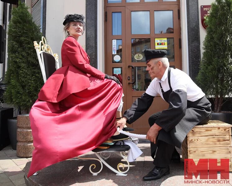 — Рассказываю интересные исторические сведения об этой части города, о гостинице «Европа». Можно сказать, занимаюсь продвижением Минска. В прошлом году на летней террасе ресторана установили кареты. К прохожим обращался: «Господа, почувствуйте себя князем/княжной! Окунитесь в XIX столетие!» Конечно, они соглашаются! А почему бы и не выпить чашечку кофе в карете и не почувствовать себя царской особой? Или вижу, например, грустного мужчину. Подхожу со словами: «Граф, не проходите мимо! Скажите: «Карету мне! Карету!». И у того сразу появляется на лице улыбка.