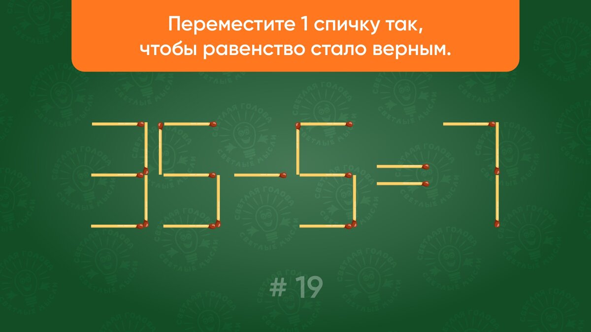 Таймер: Головоломка cо спичками # 19. Перед вами неверное равенство 35-5=7.