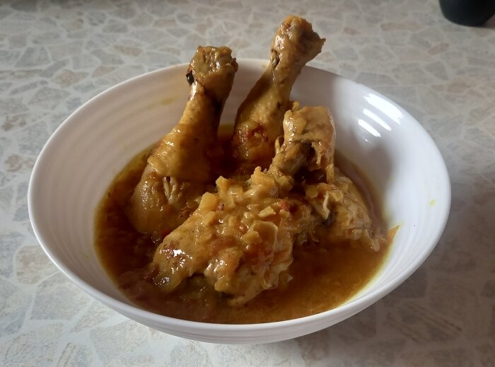 Полезла в интернет искать рецепты с этой экзотикой. Из не очень большого предложения выбрала курицу. Куриные ножки обжарила на сковороде Отложила в сторону На той же сковороде поджарила лук Выложила ножки обратно, к луку К трем ложкам кокосового молока добавила соль, хлопья красного острого перца, ложечку кукурмы для цвета и ложку острого томатного соуса Молоко густое, как замазка, поэтому добавила воды Залила в сковородку этот кокосовый соус и оставила тушиться под крышкой минут на 40 Перевернула кусочки в процессе разок Ну что сказать? На любителя вкус получился. Съели, конечно, но второй раз, пожалуй, такое делать не стану. С нашенской родной сметанкой такой же рецепт, он как-то ближе мне по вкусовым