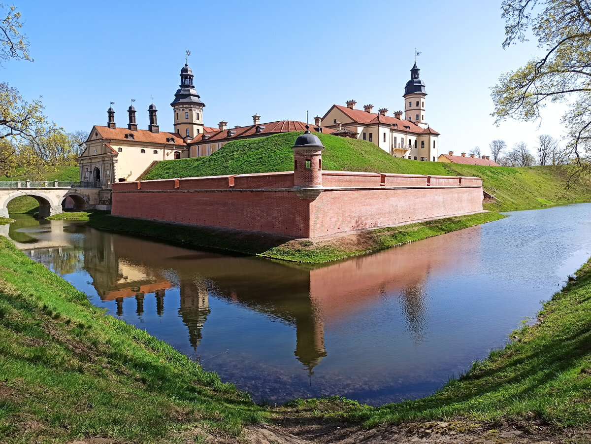 Замок заложен князем Николаем Христофором Радзивиллом Сироткой в 1583 году, на месте деревянного замка. Дата основания замка указана на табличке слева от входа в замок. Нажимайте на стрелку справа (там, где она есть), чтобы увидеть больше фотографий. Наше путешествие было организовано туристическим бюро "Добрый путь" (г. Жуковский"). А в Беларуси мы были переданы в надежные руки двух профессионалов: водителя Василия, который с необычайным спокойствием виртуозно управлял большим туристическим автобусом все пять дней нашего путешествия, и экскурсовода Василия, который мастерски рассказывал нам о любой достопримечательности, встречающейся на нашем пути. Практически все два часа поездки до замка Василий выстреливал, как из пулемета, именами и фамилиями исторических личностей и их родственников до седьмого колена, датами, фактами, легендами, былями и небылицами. Мы были в полном восторге и абсолютном непонимании, как можно всю эту информацию запомнить и очень четко передать слушателям. Это