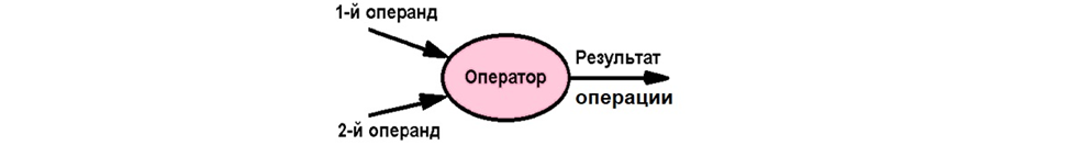 Перед Вами обычная схема вычислений – левее всего расположены операнды (исходные данные, их 2 шт.), в центре непосредственно эти данные обрабатывающий оператор и правее всего находится результат операции.