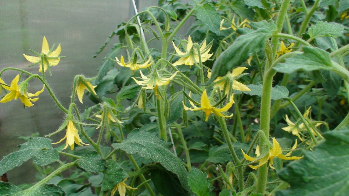 Если ваши томаты слабо цветут, скорее всего это из-за недостатка магния в грунте. Попробуйте использовать сульфат магния: 2 ст.ложки на 10 литров воды - по 1 литру на растение. К раствору можно добавить стакан сброженной травы или столовую ложку обычного уксуса. Подкормка сульфатом магния обычно помогает и при жировании томатных кустов.