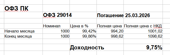 показано, что лучшую доходность, начиная с августа 2023 года, принесли новосхемные облигации с переменным купоном ОФЗ ПК, в моем примере это 29014.