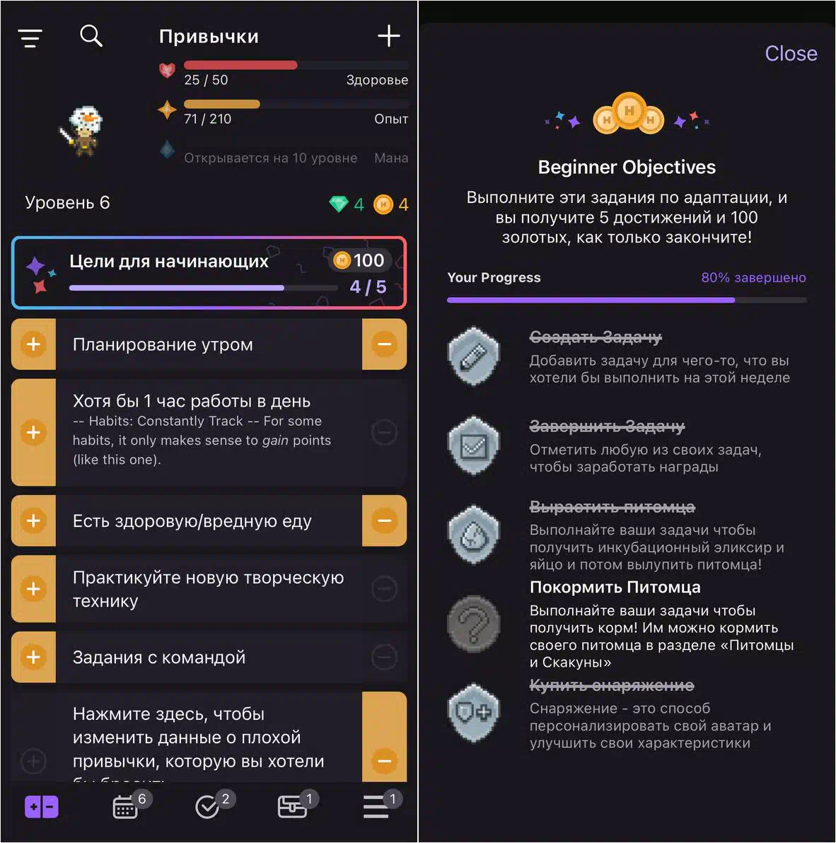 Habitica имеет совсем другой подход, вместо измены цвета, вы будете прокачивать своего игрового персонажа, да, звучит странно, но это помогает поддерживать дисциплину. При выполнении своих планов на день, в