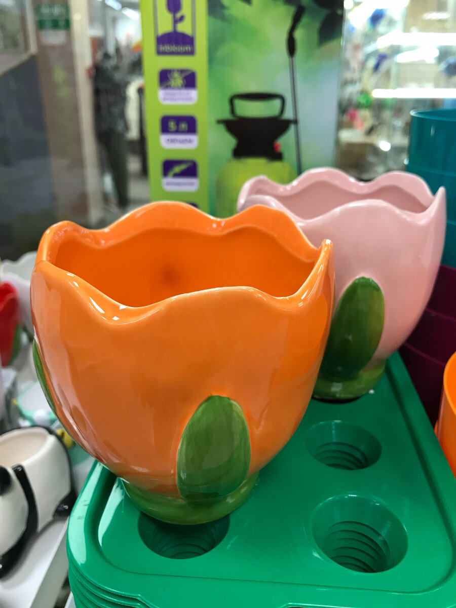 Добрый день, дорогие друзья! Шикарнейшего вам настроения! Сегодня будет обзор из магазина Галамарт Я и подумать не могла, что здесь столько новинок увижу. Давайте все по порядку Отдел "Сад и огород" Первая новинка - кашпо "Тюльпан" Вы только посмотрите на эту красоту! Состав: керамика. Горшок для цветов "Фрезия" Цвет: апельсин Кашпо керамическое "Забавные животные", в ассортименте Цена 399 руб Фигурка на стержне, в ассортименте "Крылатики", 5 вариантов "Букашки" "Божья коровка" Фонарь на солнечной батарее "Шарики" Цена 699 руб Хорошие скидки на садовый инвентарь Декорация для сада Семена, цена за пакетик-11 руб Удобрения Кашпо плетеное с бантиком Состав: бумажная лоза. Цена 159 руб Цена 249 руб Кухонный отдел А вот с этих новинок у меня -восторг! Только выставили коробку с новинками в торговый зал и ценника еще нет. Подложка из натурального материала. Предохраняет поверхность стола от воздействия высоких температур, царапин... Состав :джут Мне очень нравятся салфетки, корзины пл