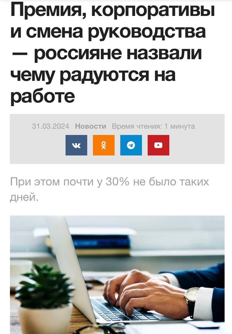 Больше всего на работе россиян радует премия, показывает последний опрос. Оказалось, что поводов для радости на рабочем месте у людей не так много.