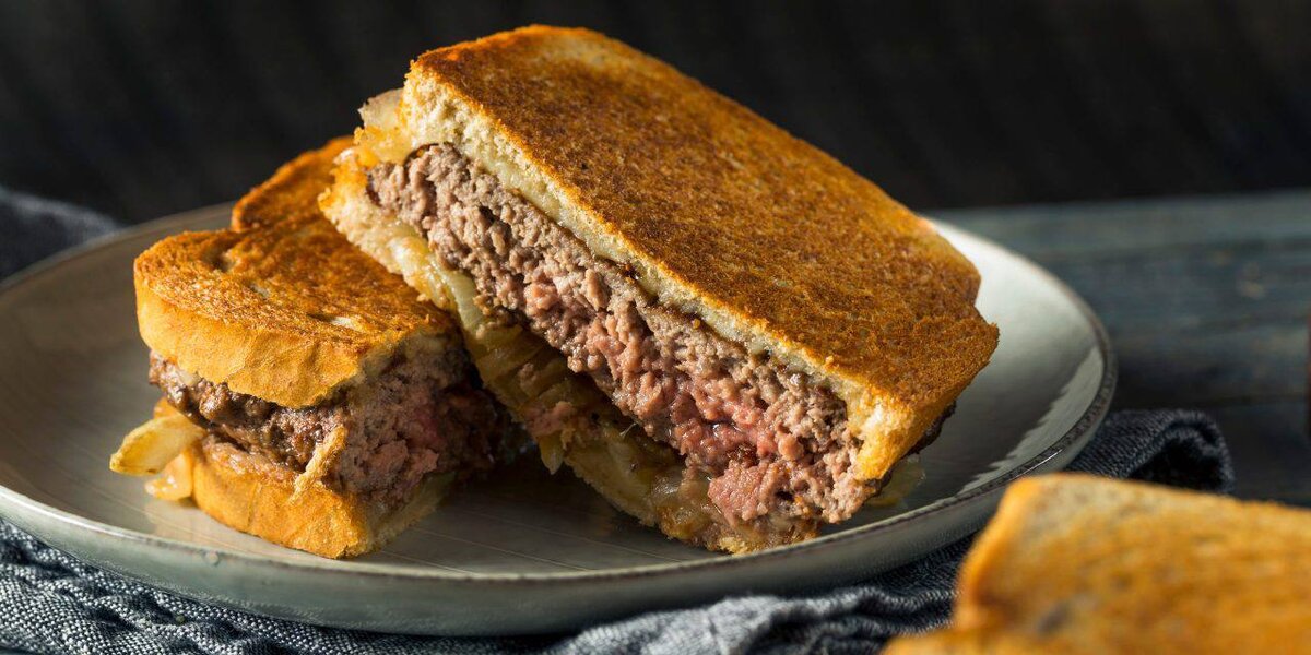 4. Соберите сэндвичи в таком порядке: хлеб, сыр, котлета, лук, сыр и снова хлеб.