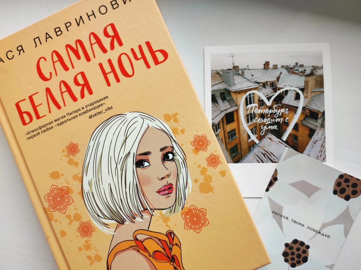 Моя любимая книга автора. На самом деле, в этом месяце я ее перечитывала. Знакомство с ней произошло год назад. Тогда, я как раз готовилась к свадьбе и планировала свадебное путешествие в Санкт-Петербург. Все так совпало, и сериал про этот город смотрели, потом книга эта попалась, как будто не мы выбрали место, а оно нас 💫 Эта книжка стала той самой вещью, которая напоминает об этом времени и ассоциируется со всем самым приятным. А поностальгировать я люблю 🤪Поэтому, воспользовавшись подарочным сертификатом, приобрела бумажную версию себе на полочку. Ну и перечитала, как раз за неделю до первой годовщины и самого путешествия, о котором вспоминаю с такой тоской, что хочется все бросить и срочно в Питер уехать 😆 «Самая белая ночь» — это продолжение другой книги «Любовь не по сценарию». В первой части — рассказ от лица двух девушек, одну из которых зовут Агния. Во второй же, она переезжает в Петербург, чтобы поступить в художественную академию и знакомится с Варей, своей новой соседко