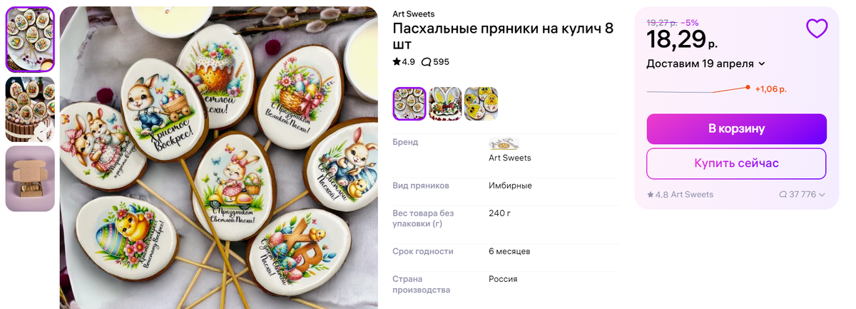 Набор пасхальных пряников в виде яичка 8 шт для куличей размером 7 см. Каждый пряник упакован в индивидуальный пакет.В пряниках отверстия и шпажки прилагаются.