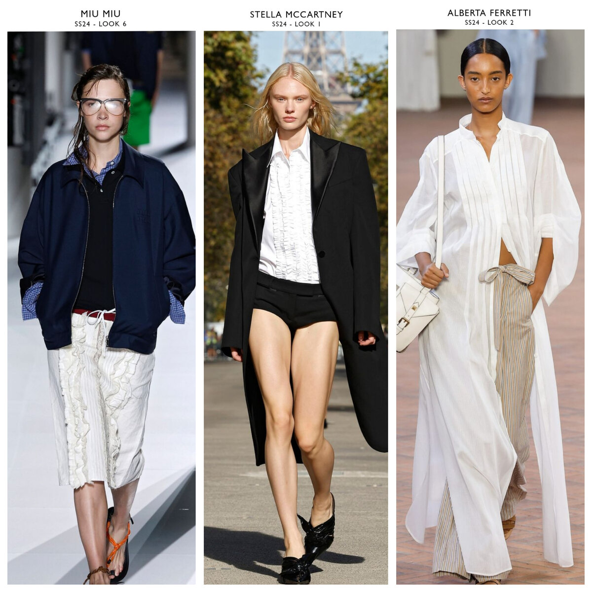 Очевидно, что мода в 2024 году взяла курс на женственность. Приталенные силуэты, открытые пупки, розовый цвет и женственные принты снова вернулись на Подиум. Коллекции сезона весна-лето 2024 были полны рюшами и кружевом, бантами и сборками, разрезами и струящимися тканями. Все это и есть детали, способные создавать женственное впечатление. Разберемся надолго ли возвращается женственность, какие тренды окажутся быстрыми, а что можно продолжать носить и после того, как тренд остынет. Начнем с крайне деликатных, но эффективных рюшей. Чтобы не скатиться в бабий стиль выбираем одежду максимально простого кроя и нейтрального оттенка, украшенную тонкими полосками рюшей. Именно этот вариант поможет избежать старомодности и создать современную женственность на грани с минимализмом. Самый женственный принт, который еще несколько лет назад ассоциировался со зрелостью и чопорностью, снова вернулся в моду. Сегодня дизайнеры предлагают носить вещи в горошек с бомберами, олимпийками, массивными к
