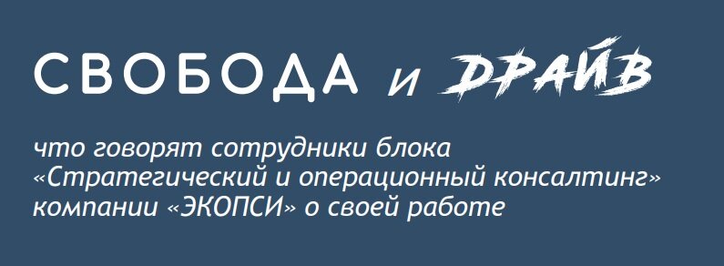 «На мой взгляд, в «ЭКОПСИ» есть несколько важных отличий от других консалтинговых компаний. Во-первых, мне очень импонирует вовлекающий подход к ведению проектов, когда мы вместе с заказчиком проходим путь осмысления тех или иных изменений, а не только даём сухие рекомендации. Большое спасибо здесь, конечно, нужно сказать накопленному в компании опыту работы с людьми. Человеческий фактор часто недооценивают, а бизнес, как известно, делают люди. Во-вторых, здесь лучше и более прозрачно устроена система бонусной мотивации персонала. Бонус действительно привязан к результату. В-третьих, у исполнителей больше гибкости, больше свободы. Уже много лет здесь успешно развивается "внутренний рынок труда". Если у консультанта есть силы, время и желание работать, всегда можно выбрать проект и “впрыгнуть” в него в наиболее подходящей для тебя роли. Система работает максимально гибко и эффективно. Здесь нет планеров и таймшитов, есть свобода и ответственность. Кстати, это один из девизов компании, который на 100% воплощается в реальности. Консультанты сами выбирают проект, график работы и время присутствия в офисе. Другой девиз компании - Интеллектуальный бульон, то есть это среда, которая всегда и во всем поддерживает твоё стремление к развитию.
