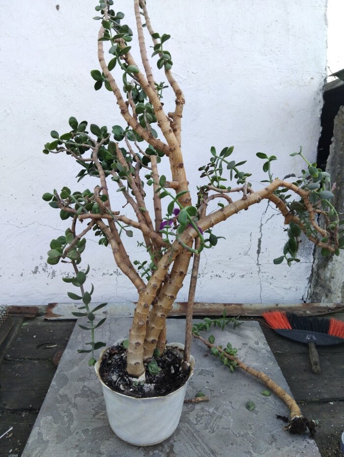 В руки мне попало вот такое денежное дерево. Несмотря на внушительные размеры, ветки слишком вытянуты, на стволах много воздушных корней. А ветки и листья ломались и осыпались при малейшем прикосновении.