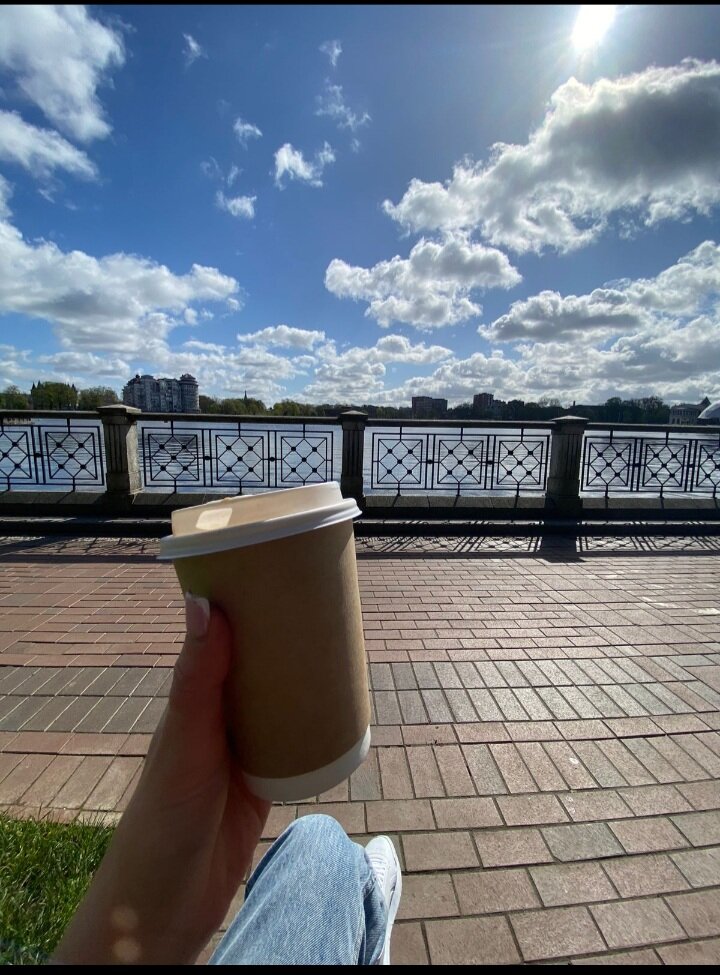 Всем доброго утречка))) Сегодня утро меня встретило хорошей солнечной погодой. Мой приятель уехал на работу, целый день я буду гулять по городу, а маршрут прогулок мы с ним наметили вчера вечером, когда гуляли по вечернему Калининграду. Это я с кофе утром на набережной около отеля. Отдохнувшая и в прекрасном настроении перед прогулкой по городу. Вчера я вам пооткровеничала о своём девичьем. А сегодня у меня в голове мысли о том, почему мы не видим или не хотим видеть знаки судьбы , которая она нам посылает. До замужества такие знаки мне посылала судьба, а я закрывала глаза и ничего не видела, любовь все затмевала, как незря говорится в народной поговорке "Любовь зла, полюбишь и козла". Где-то за полгода до свадьбы, мой жених попросился у нас пожить ненадолго, на месяц. Объяснил он это тем, что купил мне подарок-телефон в кредит на 3 месяца, а так как он жил в общежитии, заканчивал на тот момент наш ж/д техникум, то тех денег, которые ему высылали родители, ему не хватало. Мои род