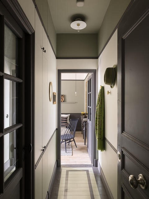 Всем привет! Продолжаю тему французских интерьеров и рассматриваю работу дизайнера Марианны Эванну. Здесь в этих работах столько интересных приемов и я сама ими пользуюсь. В первой статье я уже показывала некоторые идеи, которые сможет каждый повторить Здесь мне понравился вариант зонирования небольшой кухни с открытыми полками. Очень часто я слышу в свой адрес негодование по поводу двухкомфорочной плиты или невозможности разместить посуду в тех проектах, которые я показывала иоли что сама реализовывала. Давайте посмотрим, как это сделал профессионал на примере кухни в небольшой квартире. Обратите внимание на кухне все есть -духовой шкаф, мойка, плита и шкафы для хранения. Из этой точки хорошо видно, что площадь кухни совсем небольшая, но благодаря окну и балкону, плюс и интересному окрашиванию квартира не кажется маленькой Открытые полки и минимум керамической и стеклянной посуды В интерьерах Эванну очень часто фигурирует большое зеркало с консолью на интересных ножках. Обрати